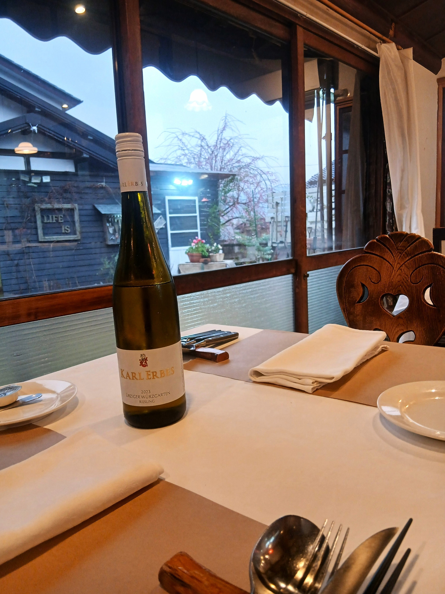 お隣のしだれ桜とドイツワイン(ユルツィガー)